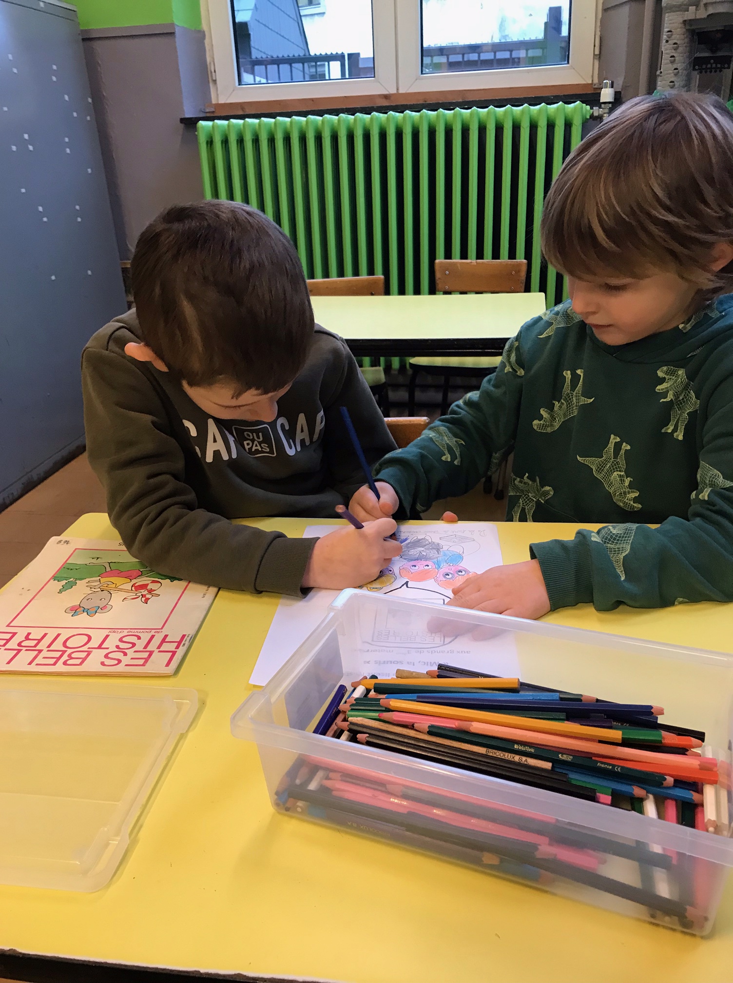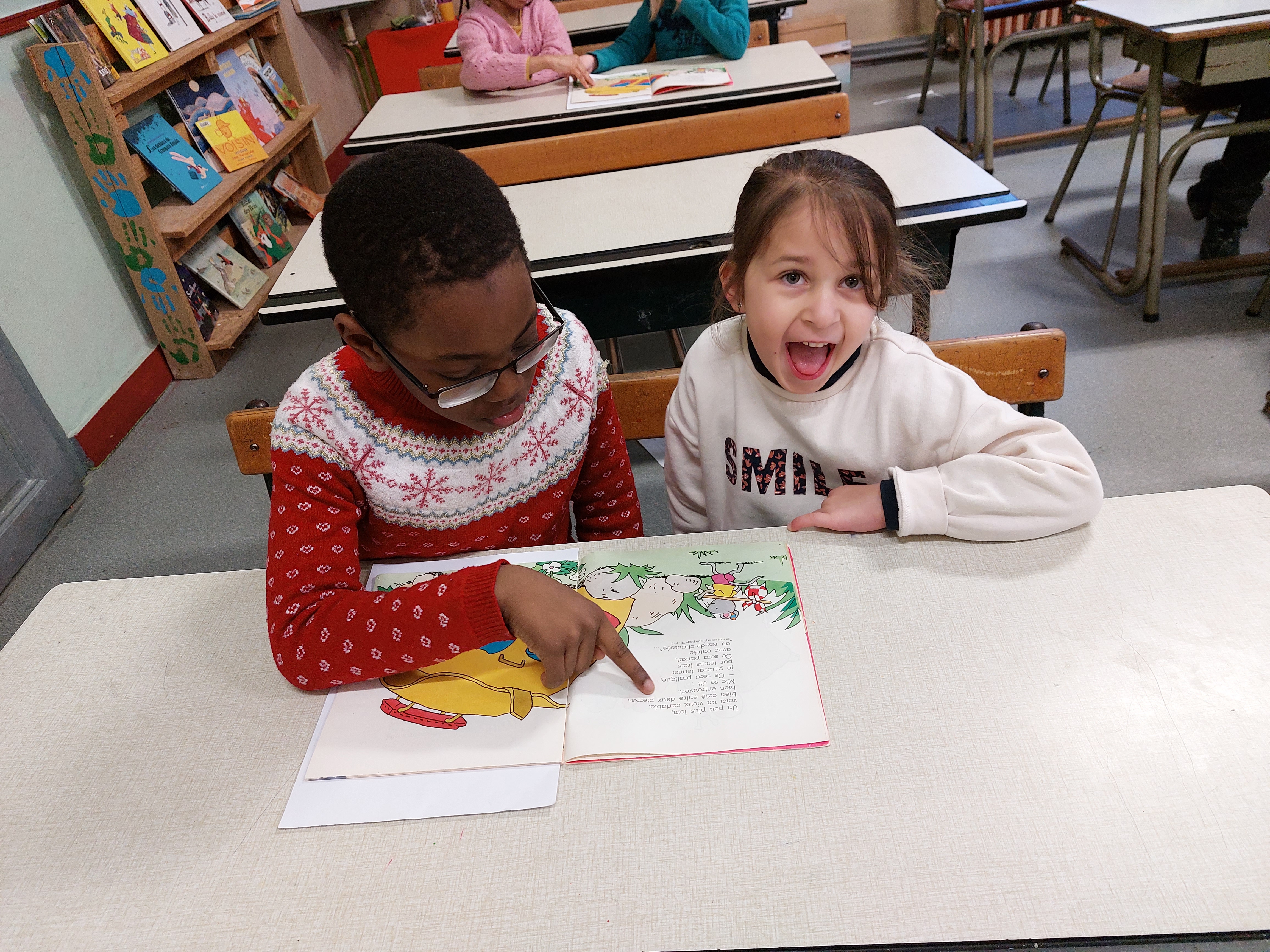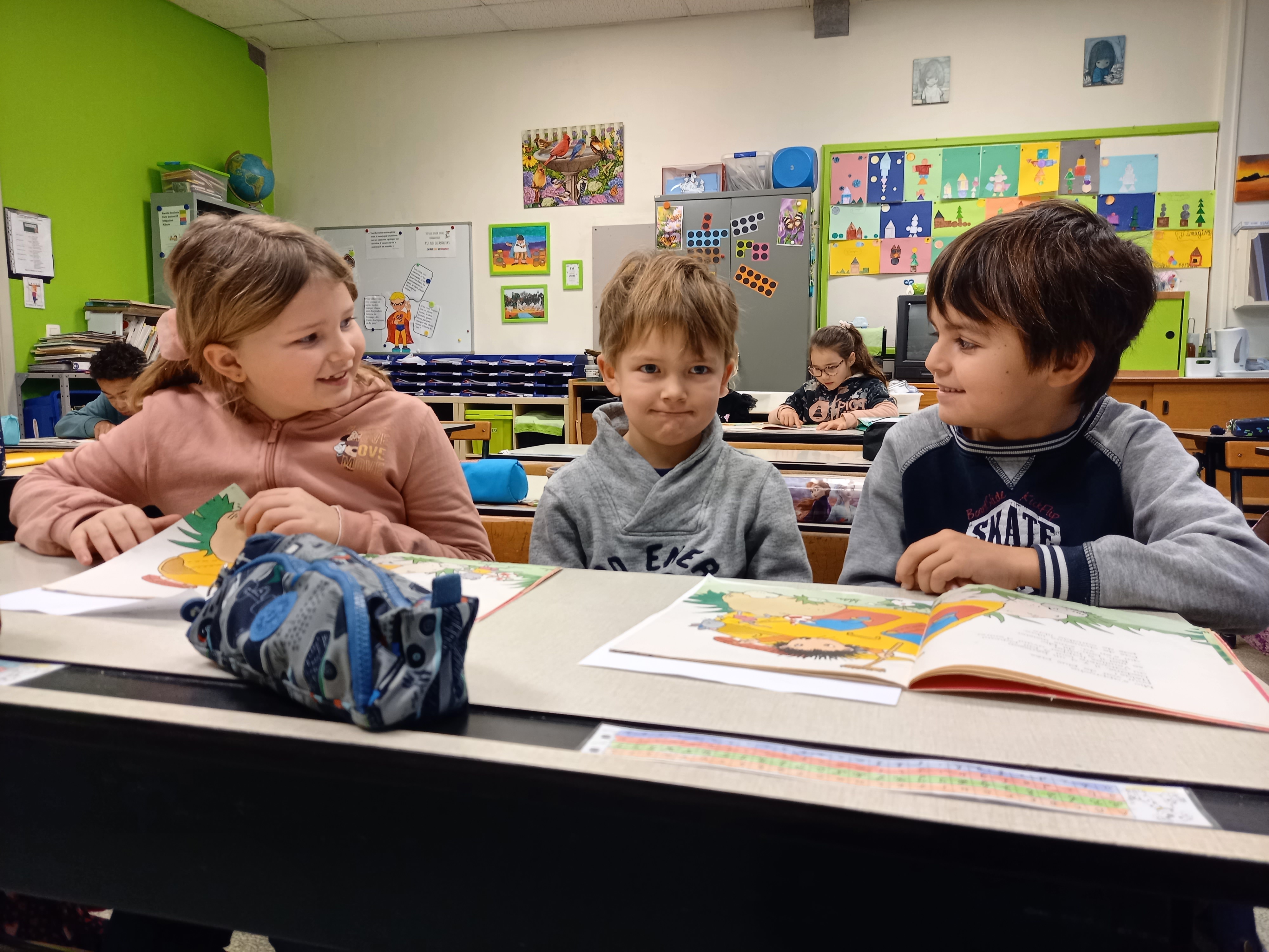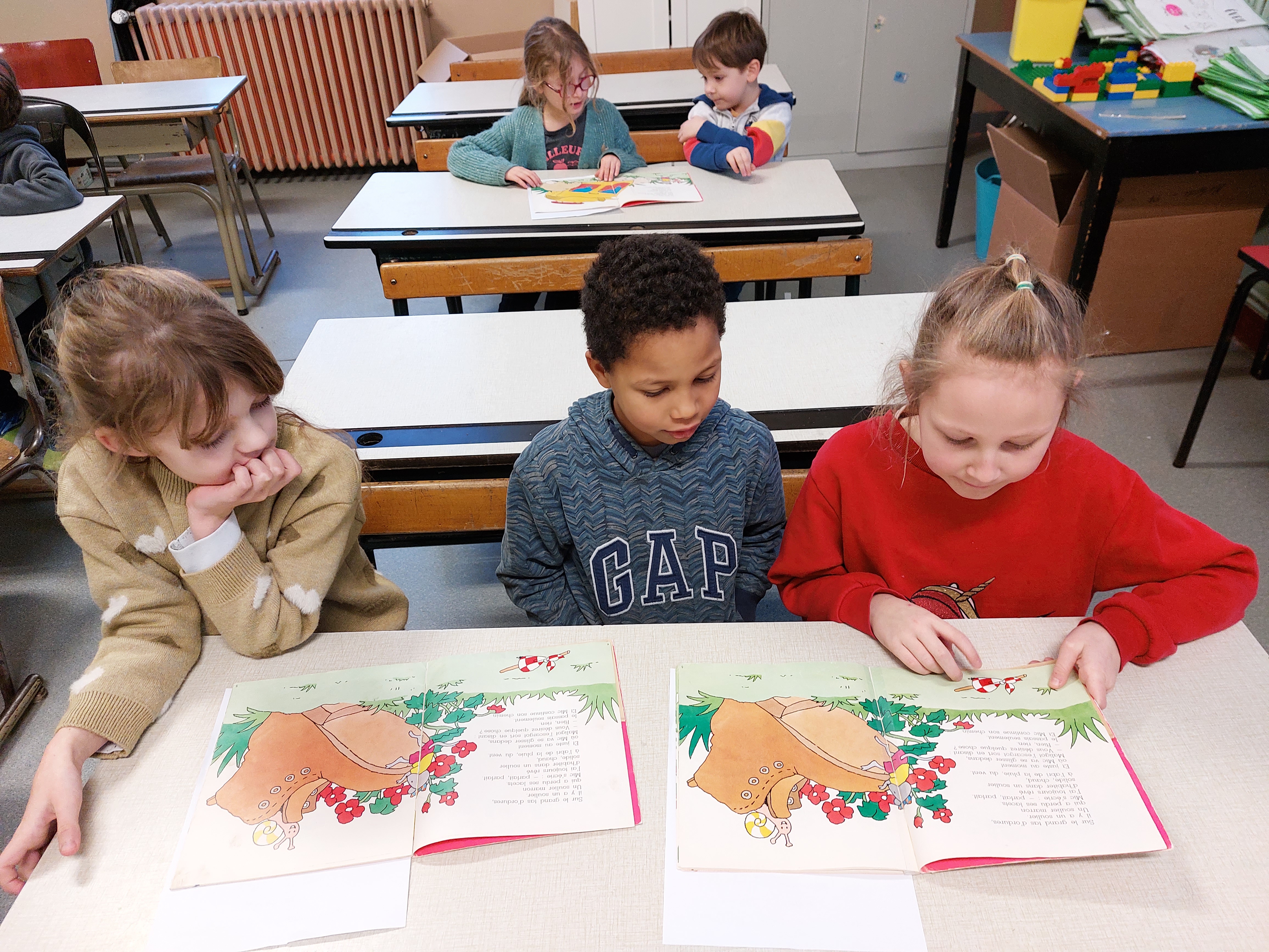 Les grands de deuxième primaire lisent une belle histoire aux petits de troisième maternelle !