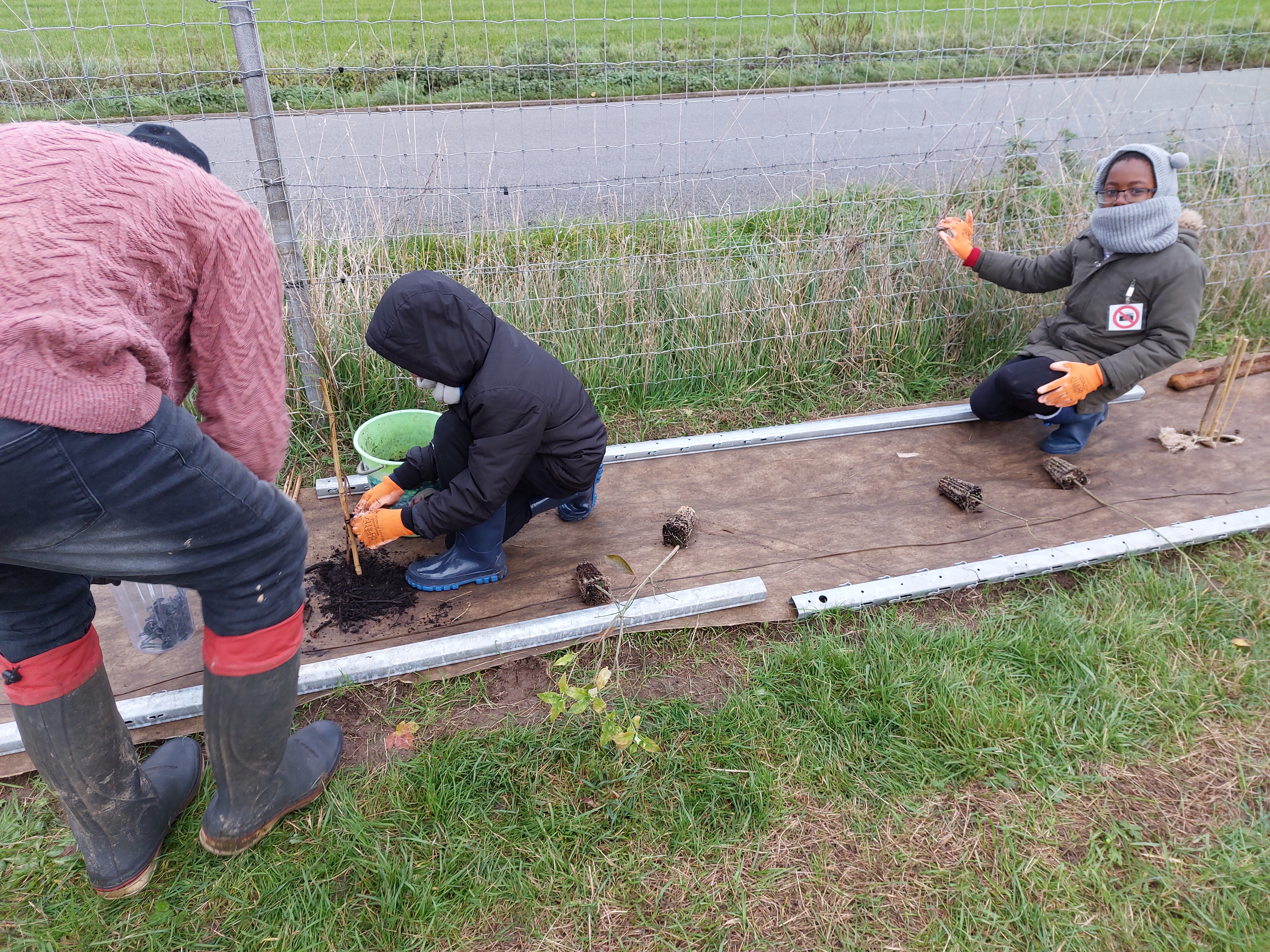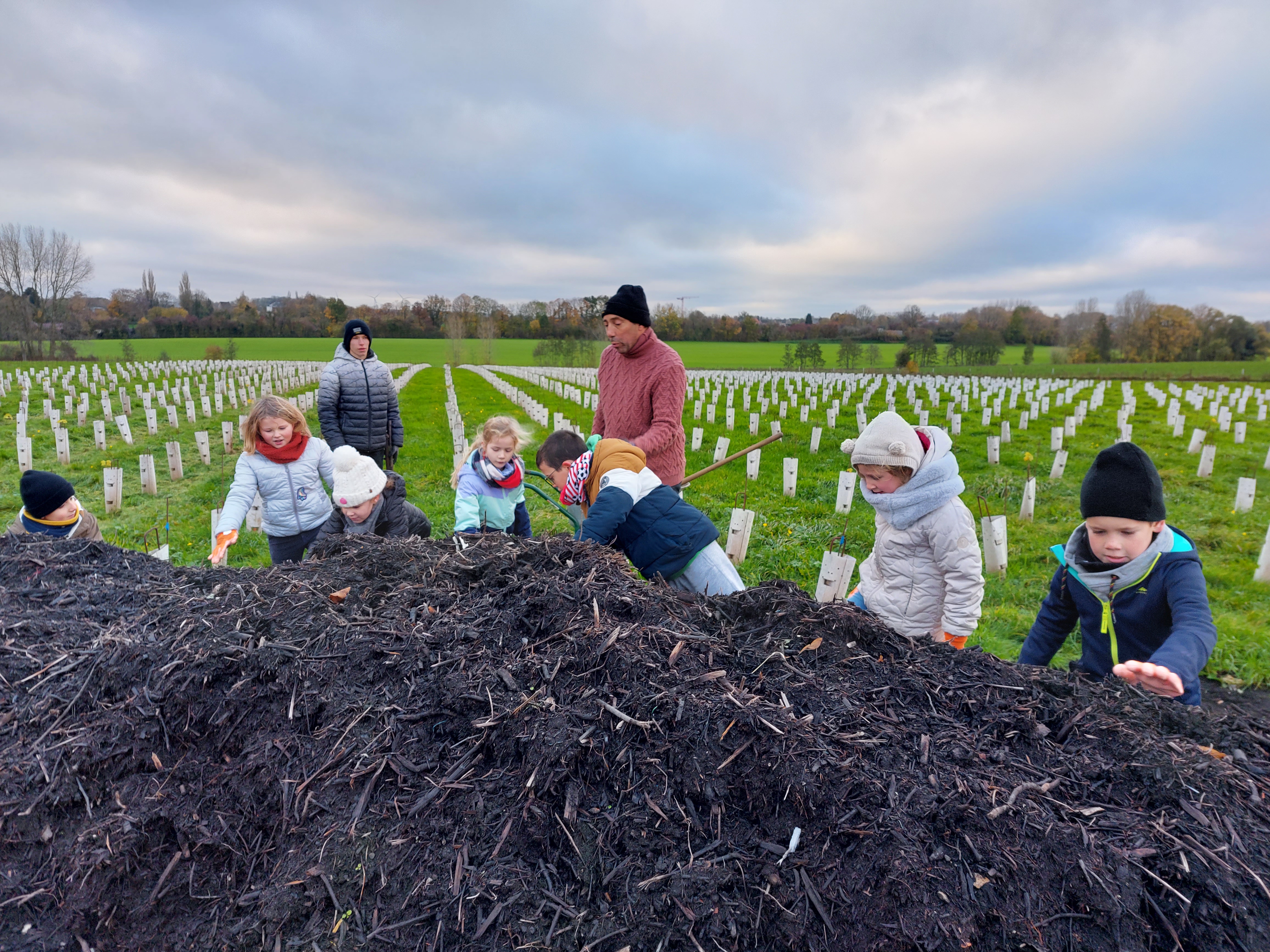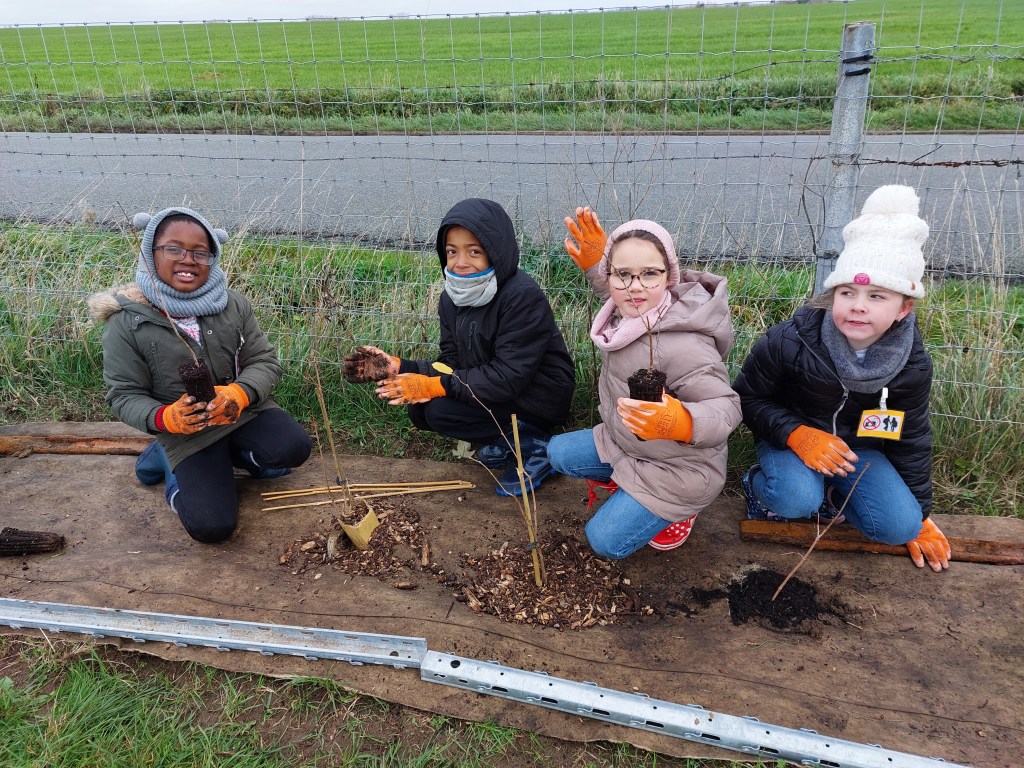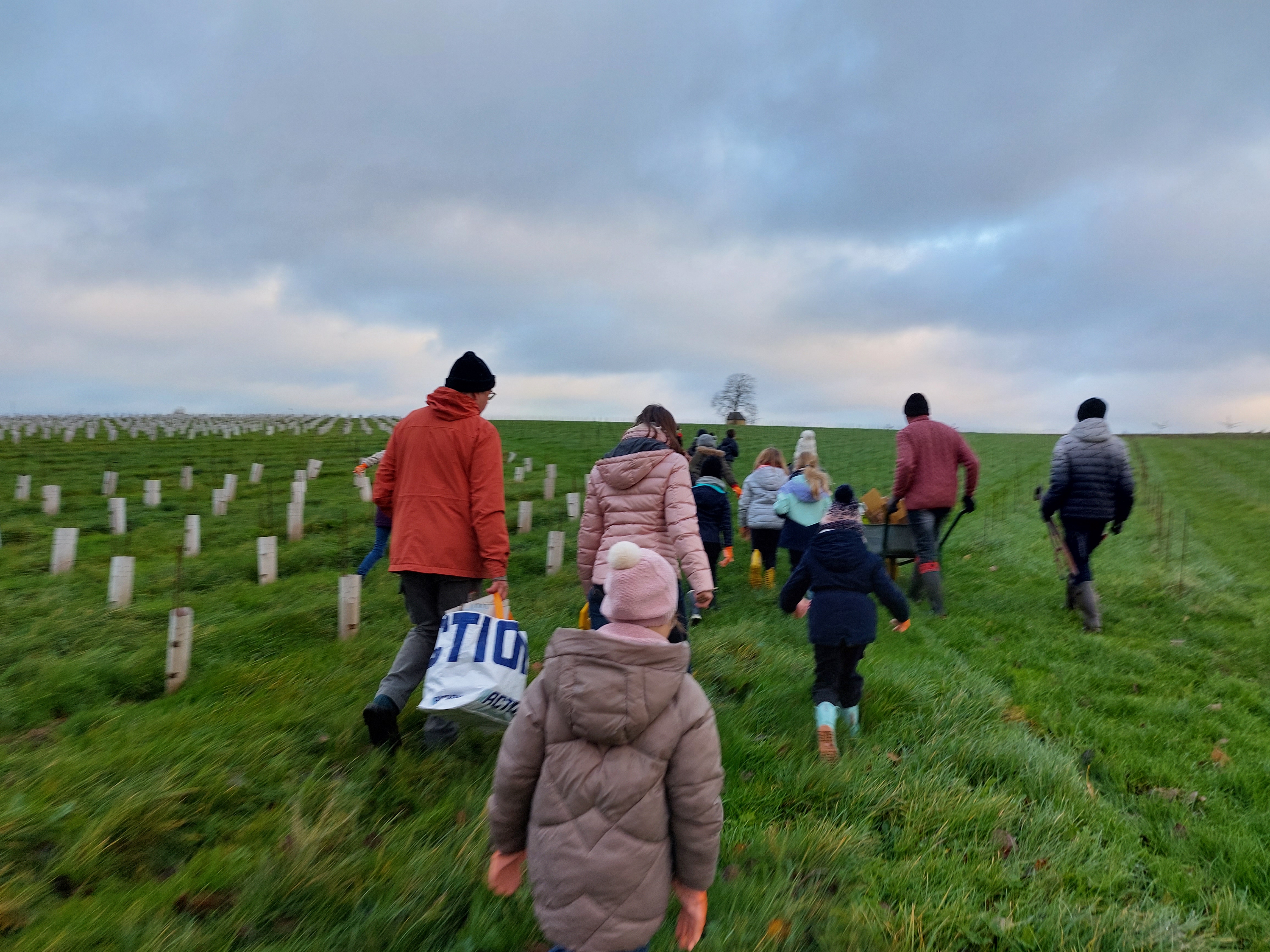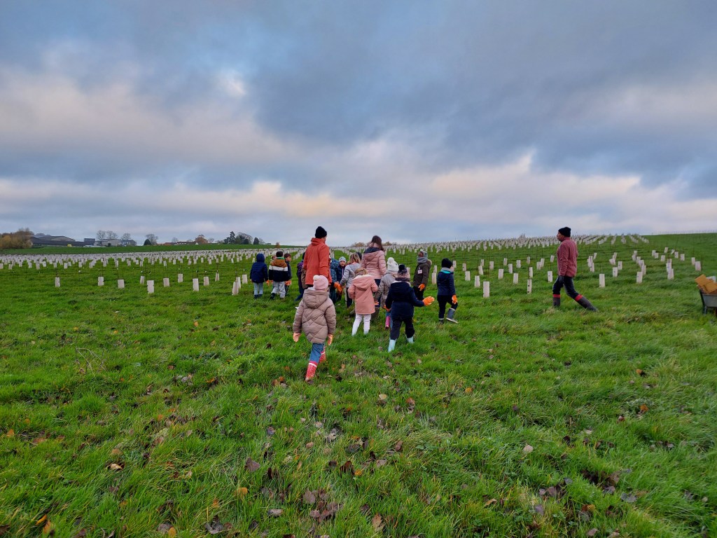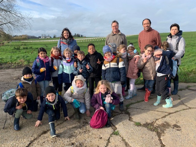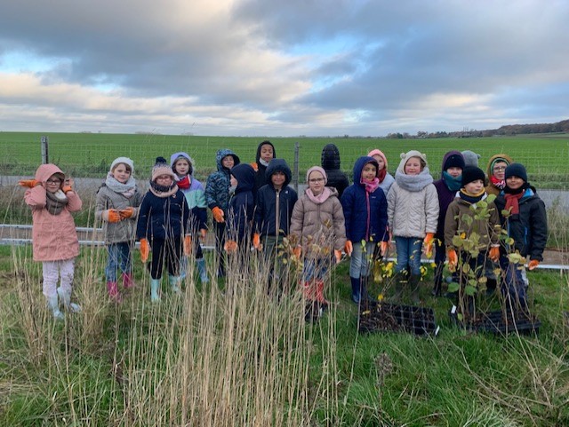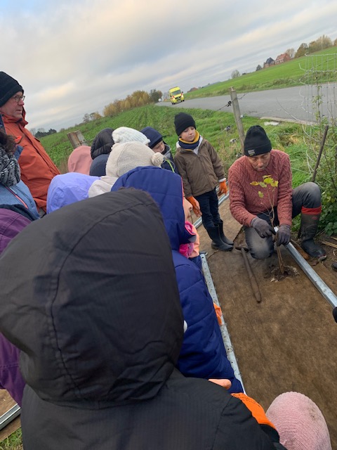 Tous au travail pour aider Monsieur Catteau à planter une haie dans son vignoble » Le domaine des Coteaux des Deux Tilleuls » ! Dans quelques années, les élèves de deuxième année seront fiers d’observer la haie qui aura bien grandi et qui pourra accueillir les insectes et les oiseaux tout en protégeant la vigne !