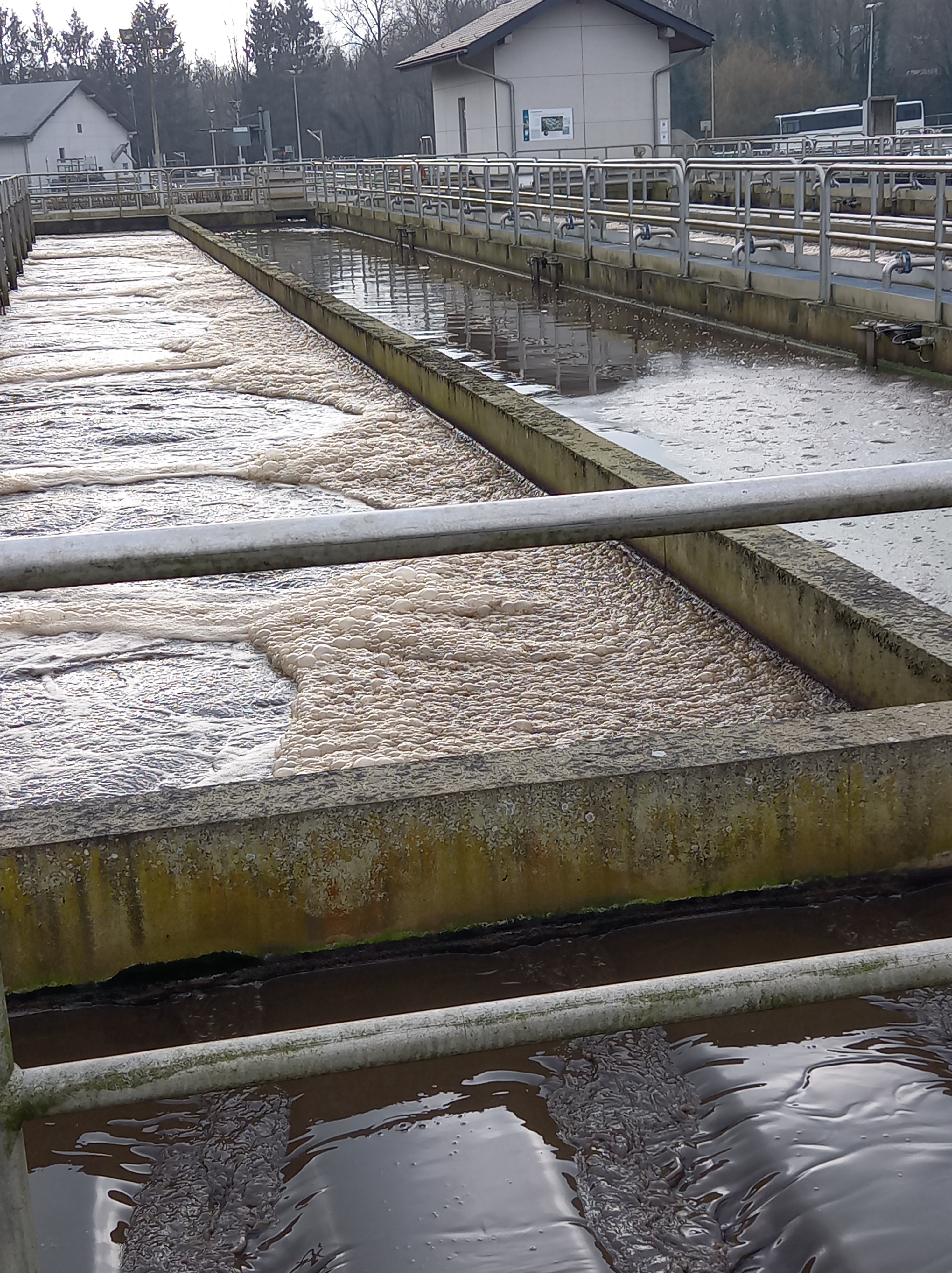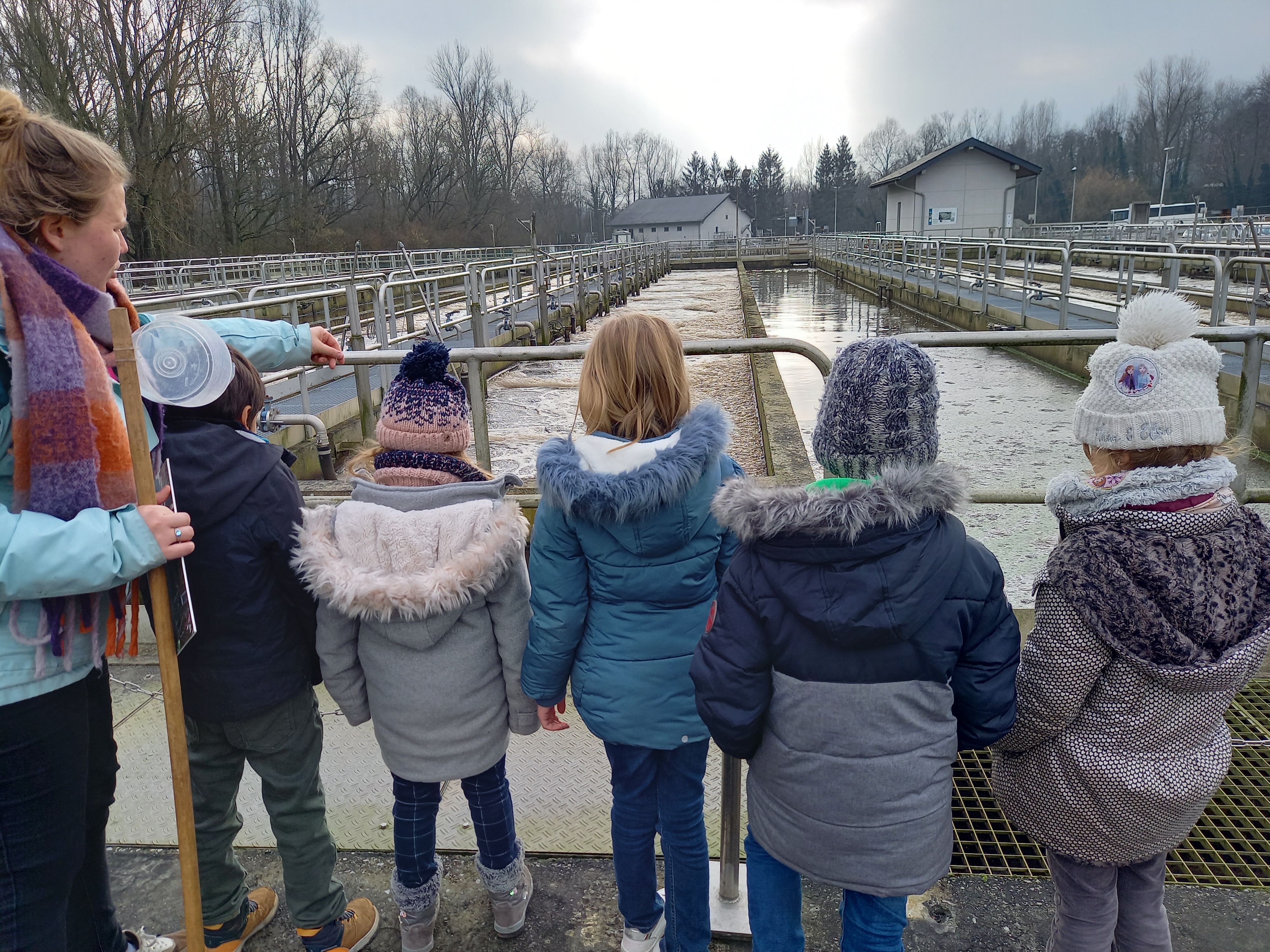 Visite guidée d’une station d’épuration où nous découvrons les étapes suivies par l’eau polluée avant de retourner dans la rivière.