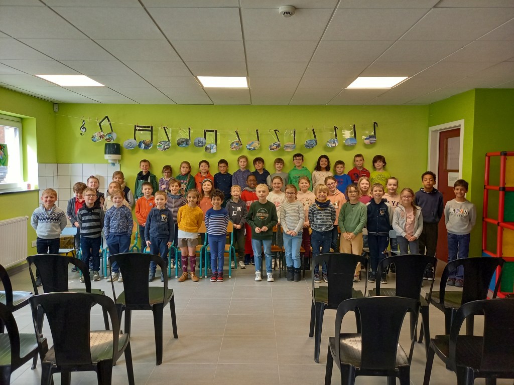 Souvenir de la chorale des élèves de P1 et P2 lors des portes ouvertes du vendredi 24 mars 2023.