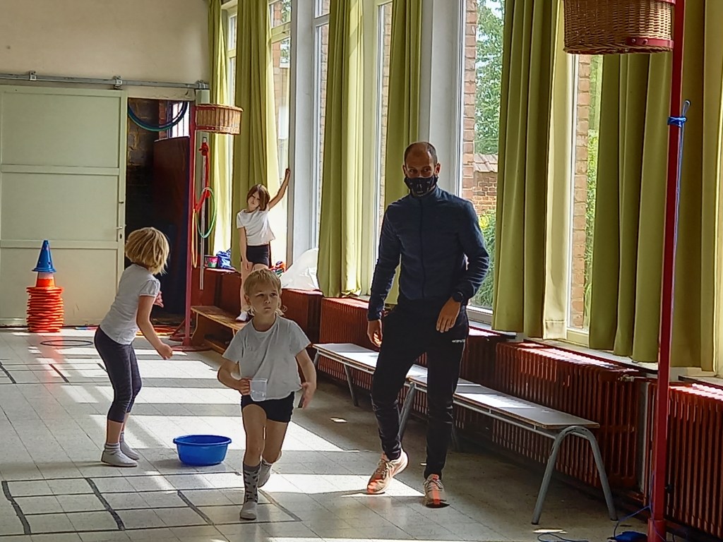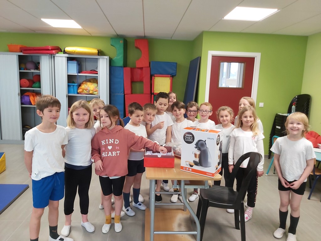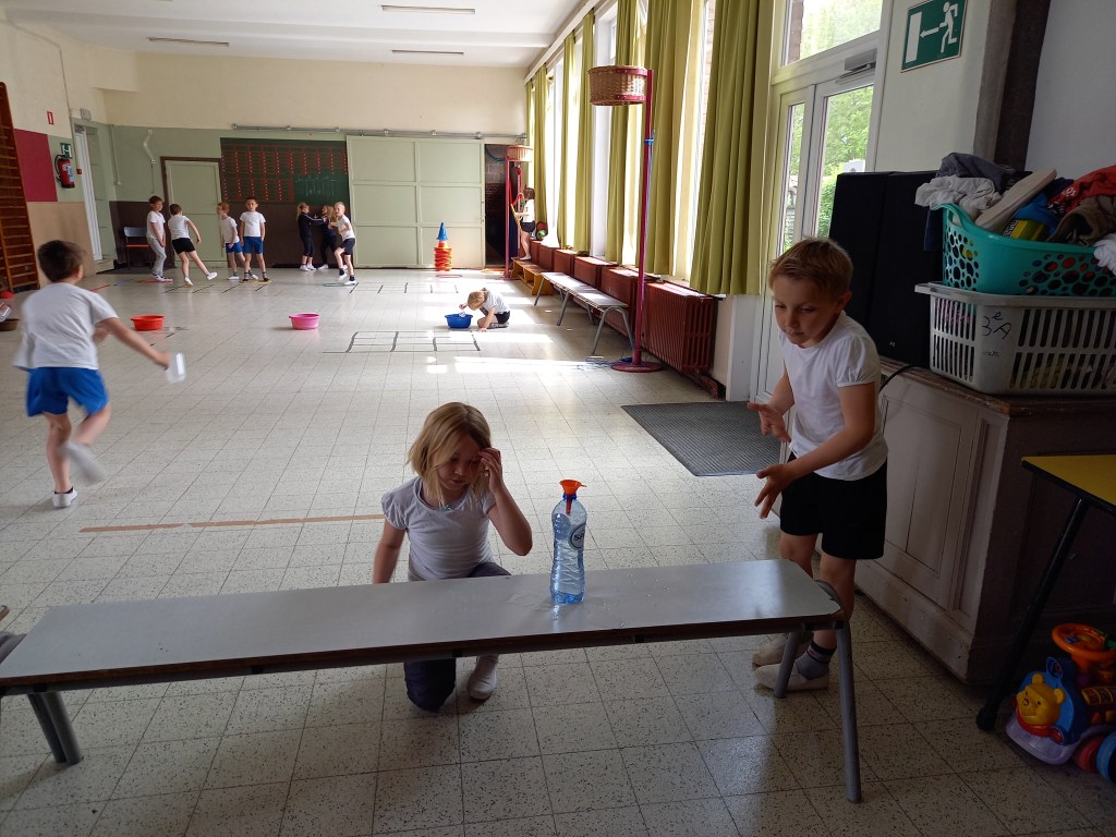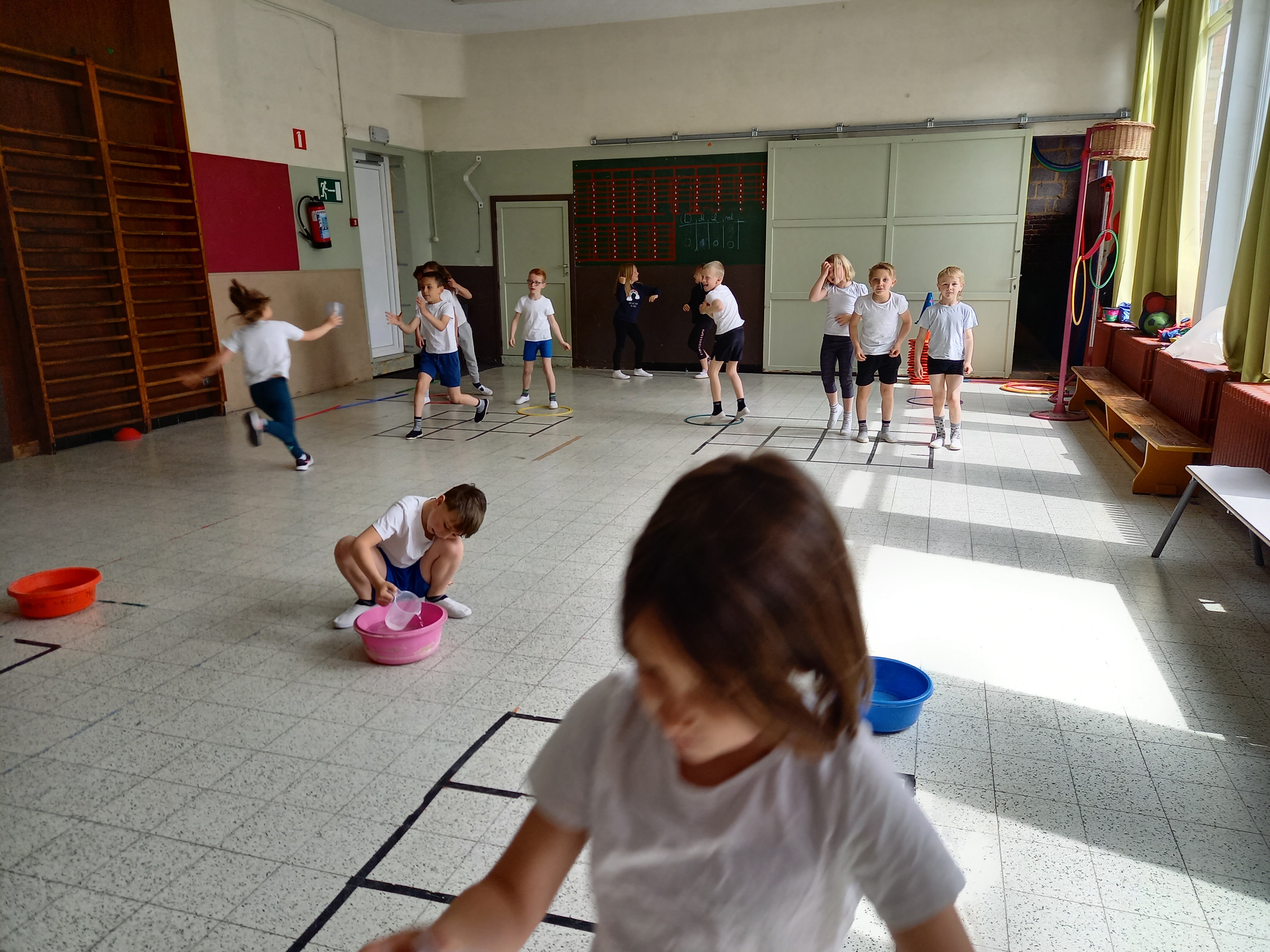 Découverte du litre et de l’utilisation d’un pot gradué durant le cours de gymnastique avec Monsieur Maxime.