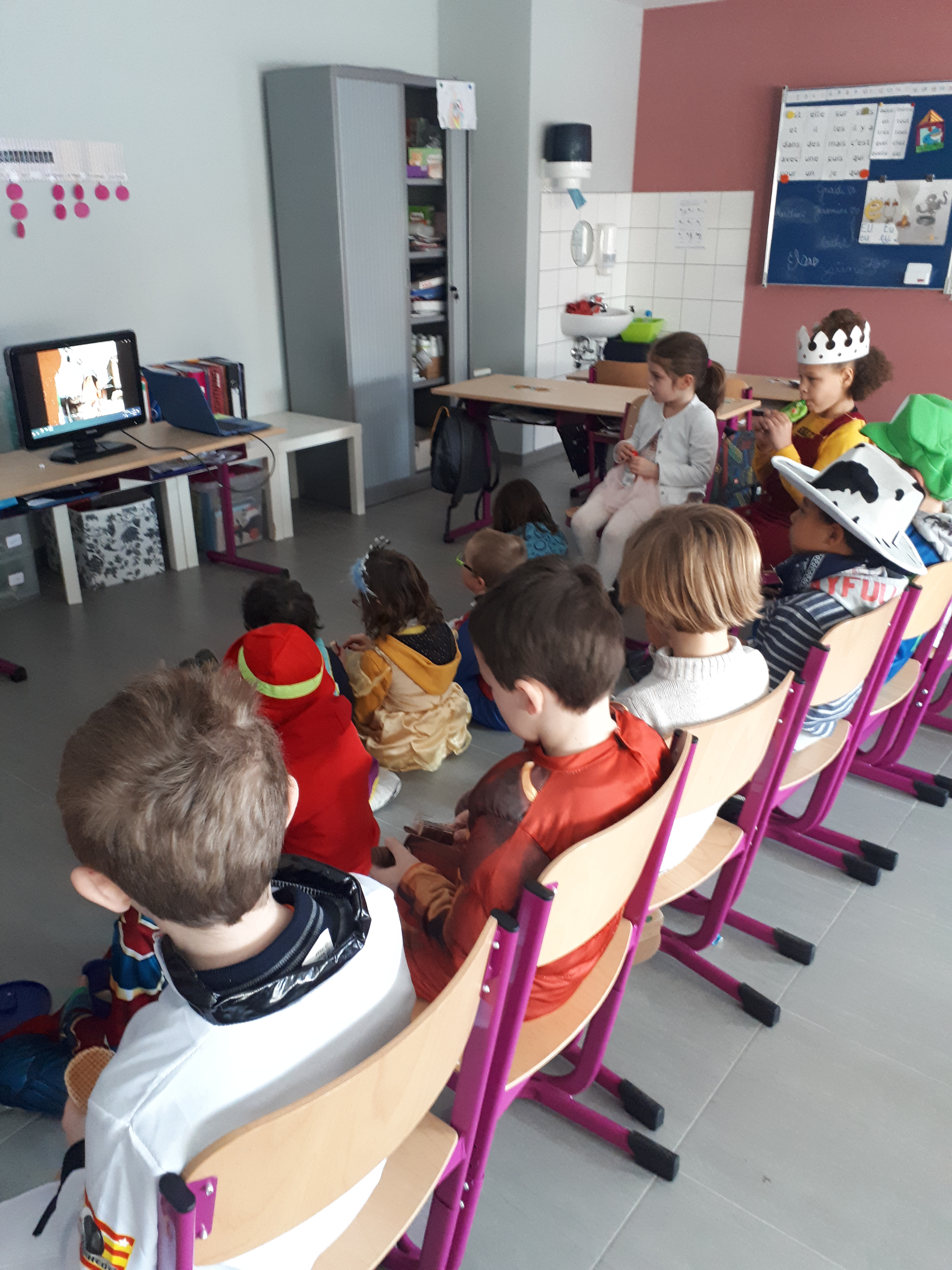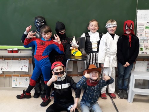Et oui, cette année, nous avons fêté le carnaval dans notre classe et nous avons passé une belle matinée à l’école malgré le code rouge ! Quel plaisir de lire, de calculer et de s’amuser avec nos beaux costumes ! Même Câlinou, la mascotte de la classe, a mis son beau déguisement !!!!