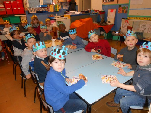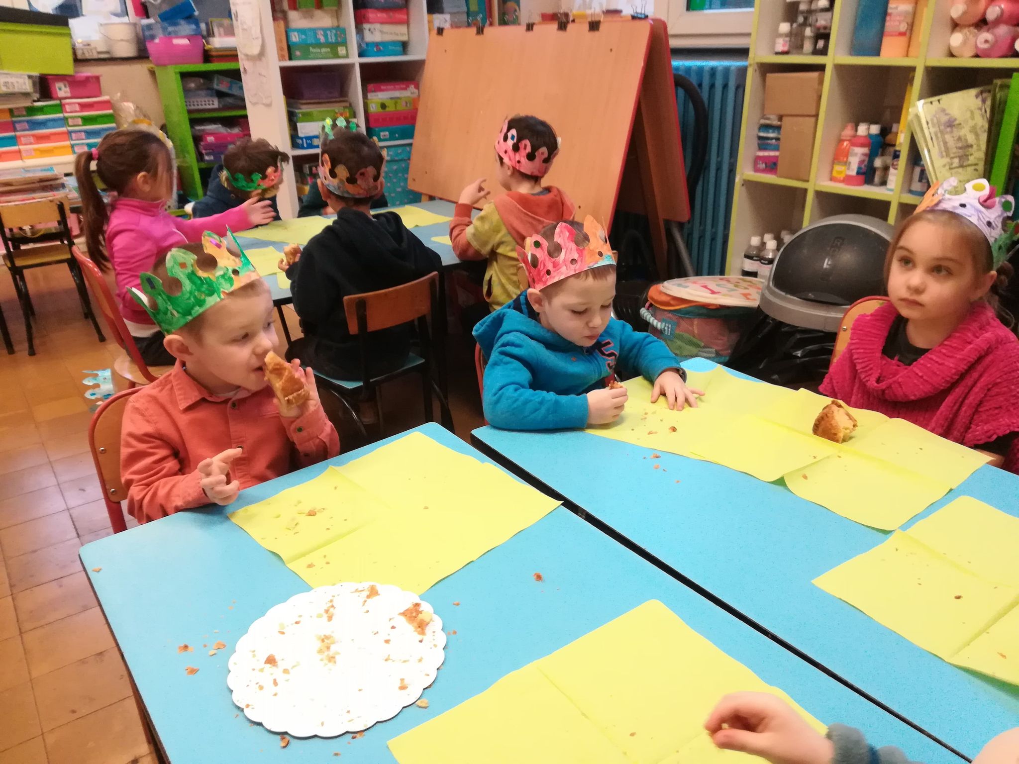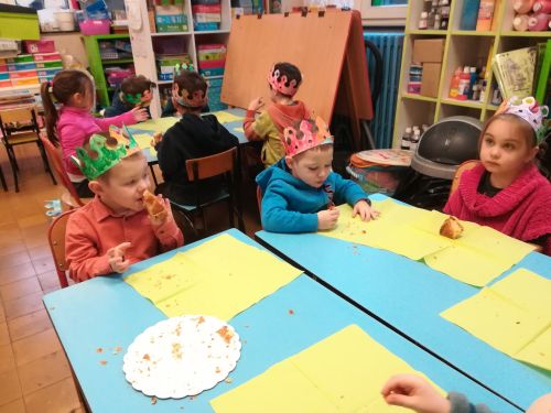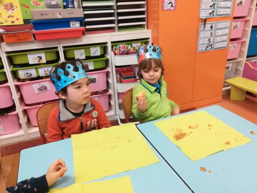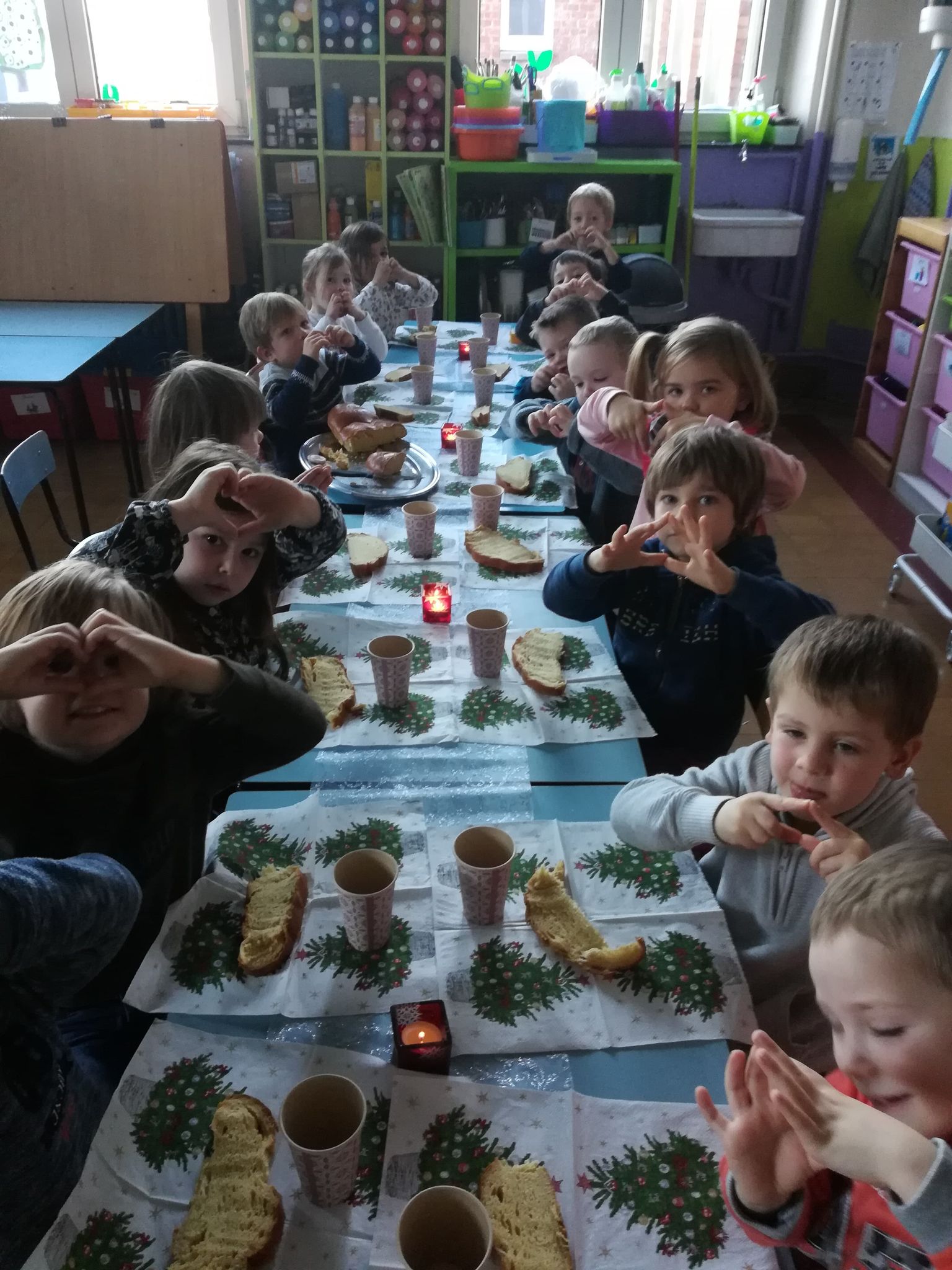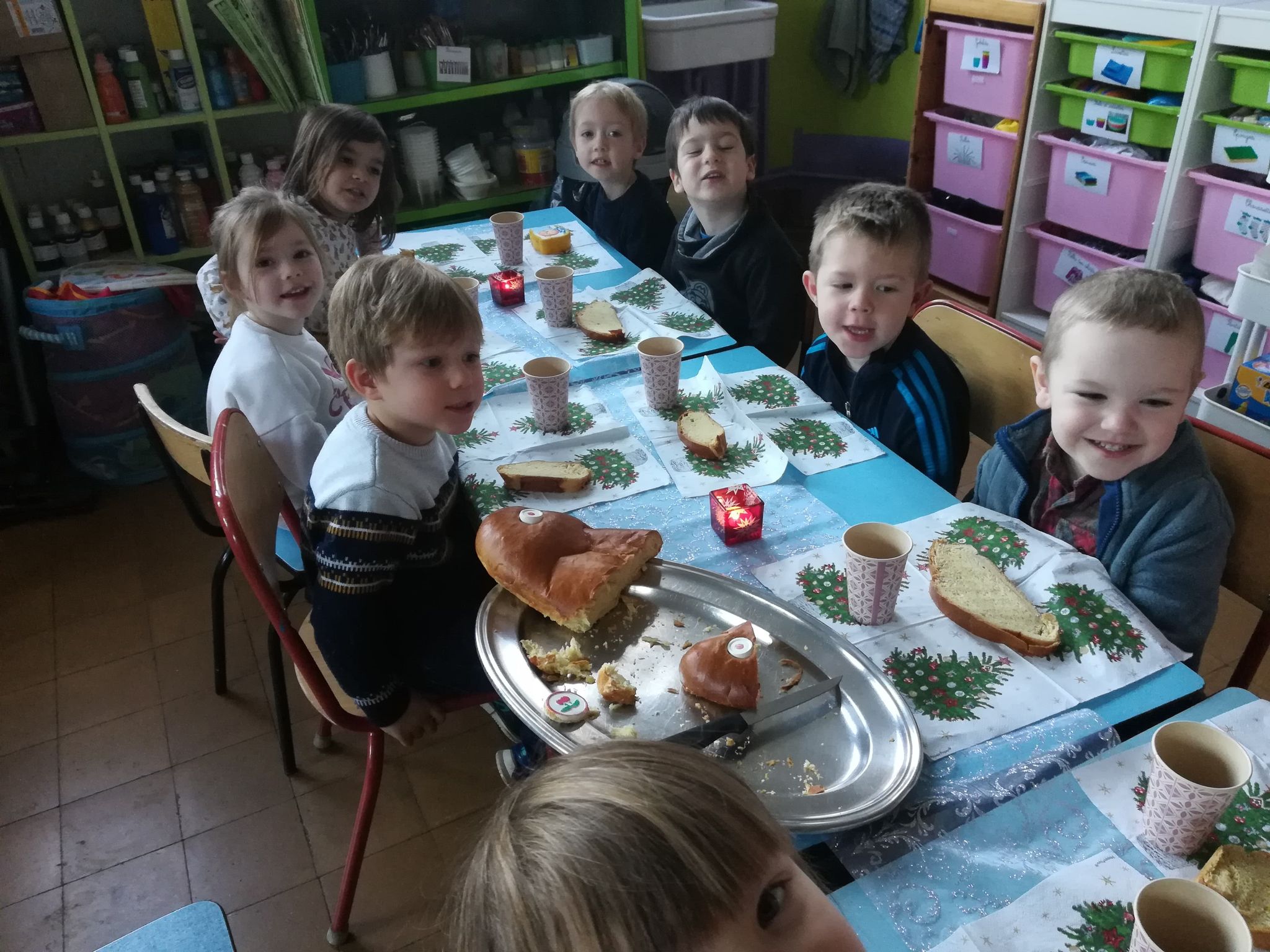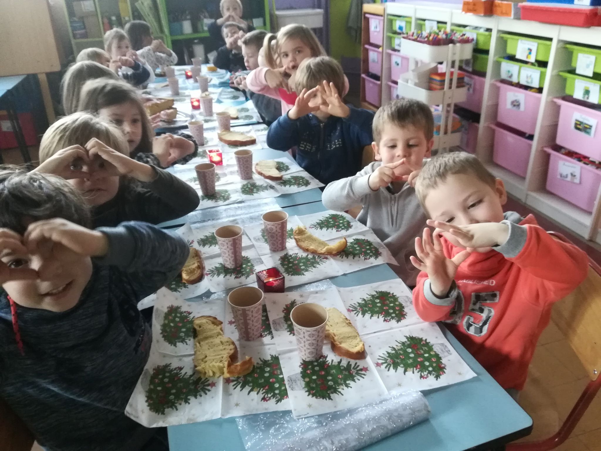 Les petits peintres de 2ème A s’appliquent pour peindre leur crèche de Noël.