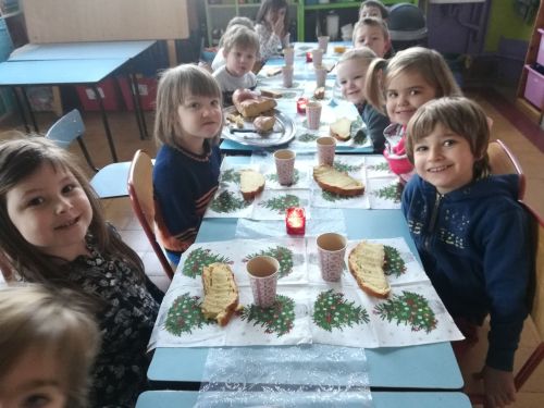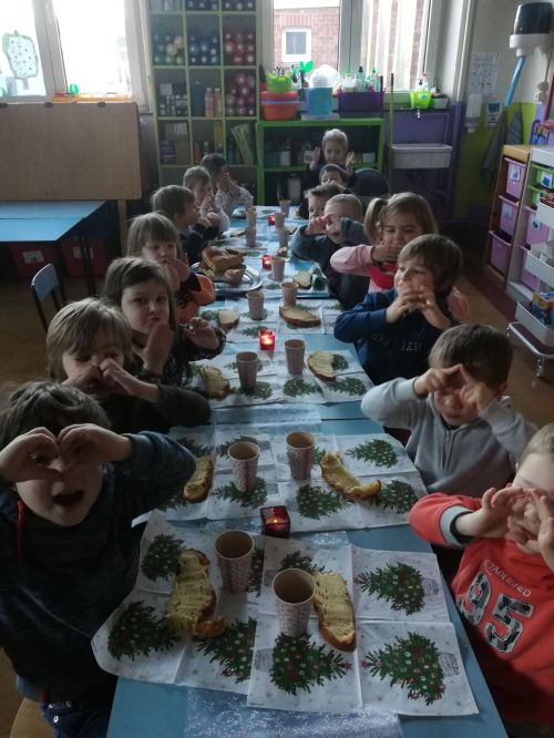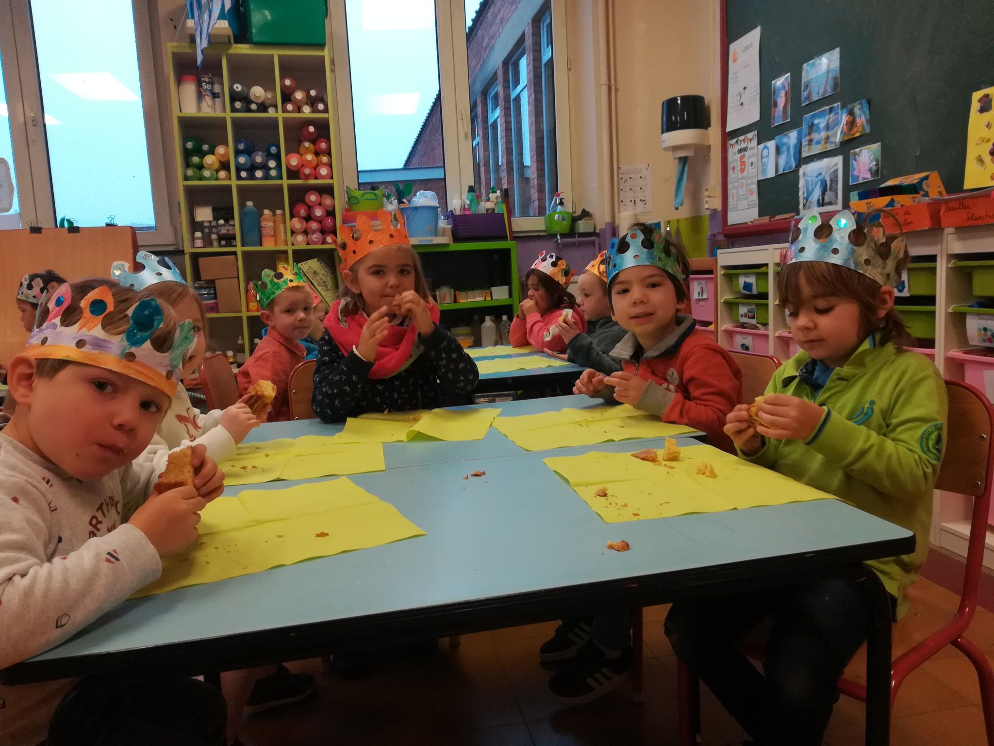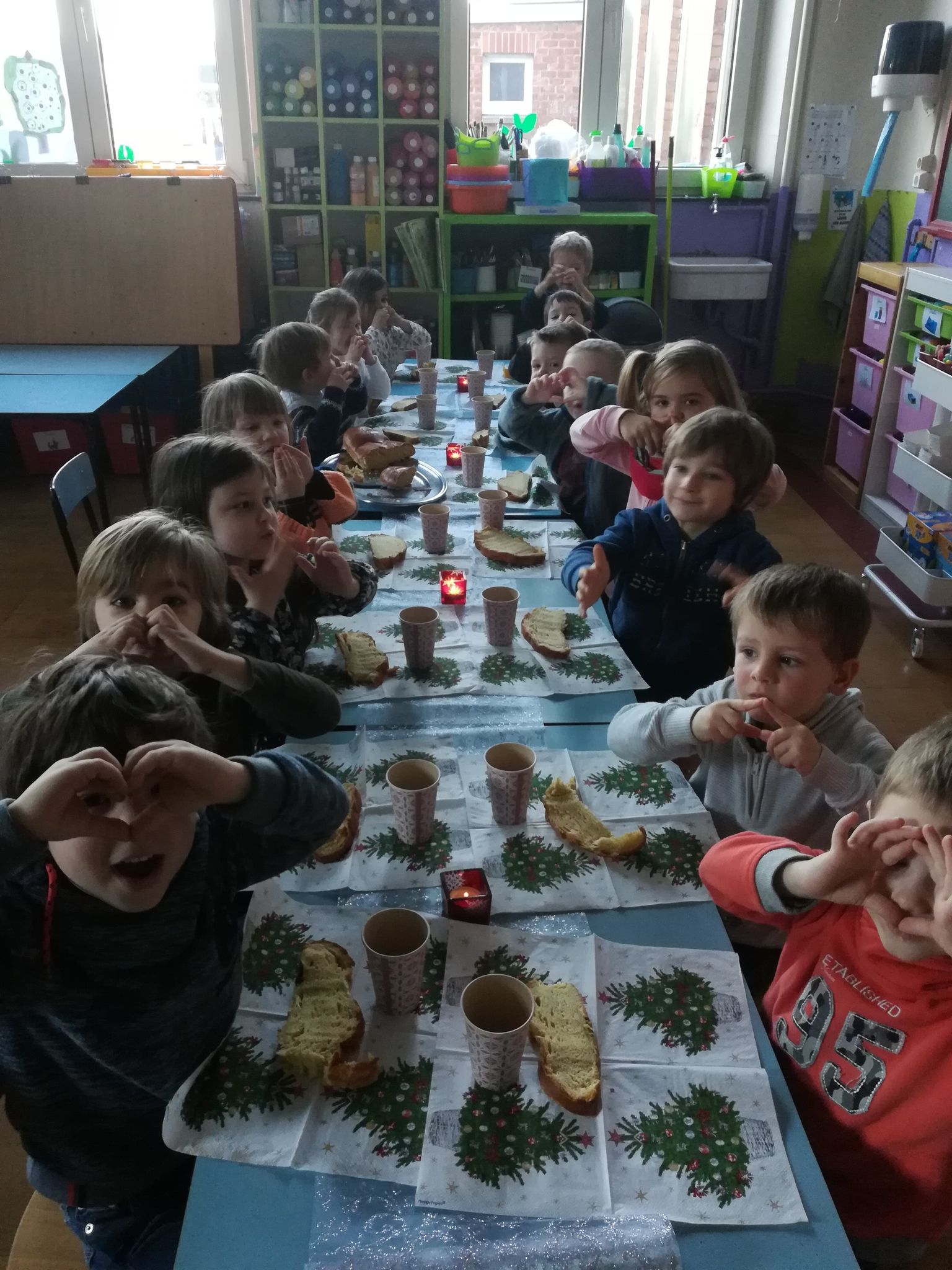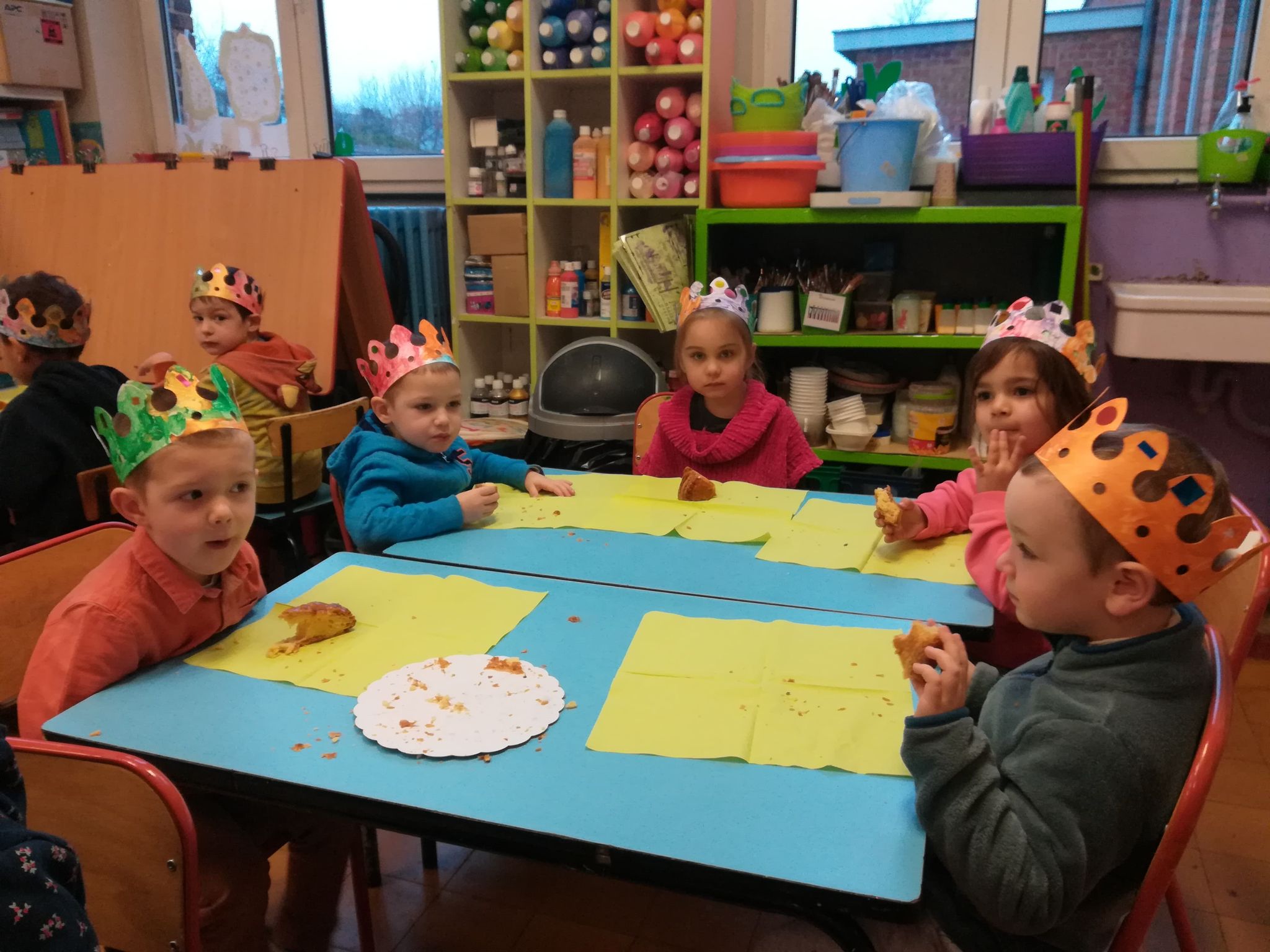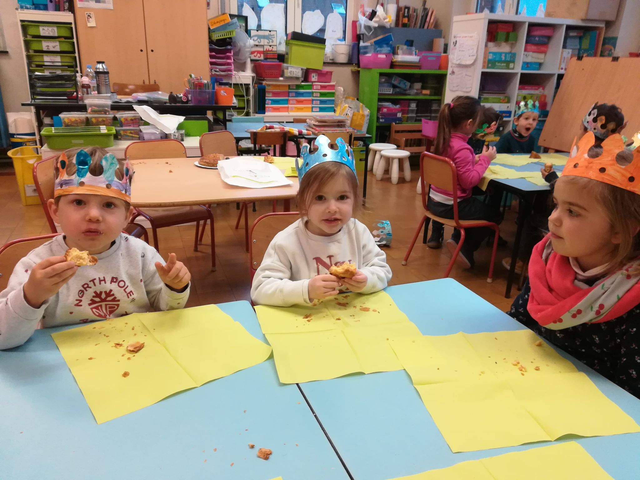 Les petits peintres de 2ème A s’appliquent pour peindre leur crèche de Noël.