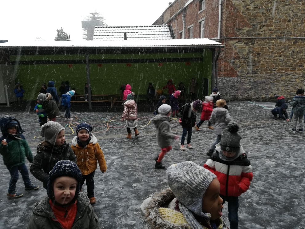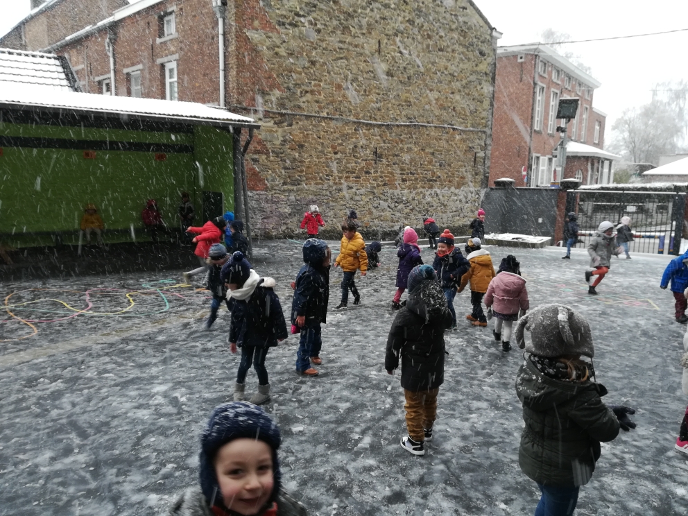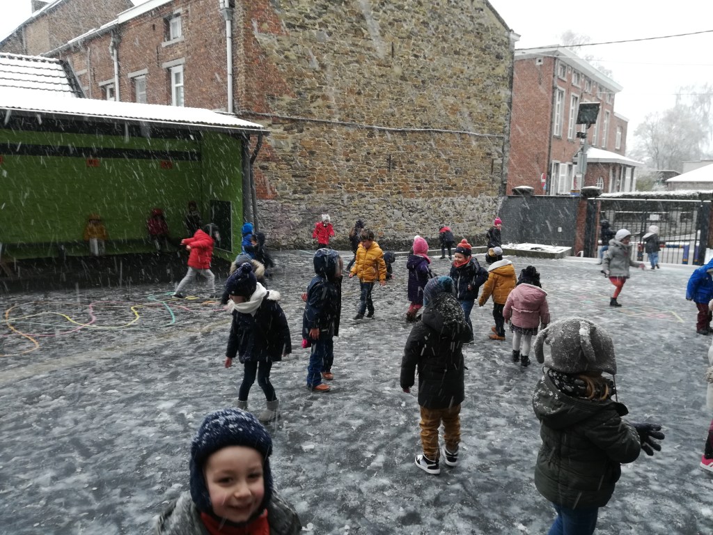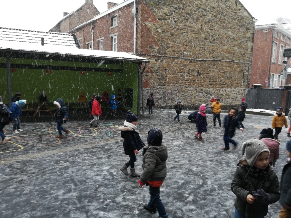 Pour le plus grand bonheur des enfants, la neige est tombée. C’est l’occasion pour eux de s’amuser pendant la récréation !