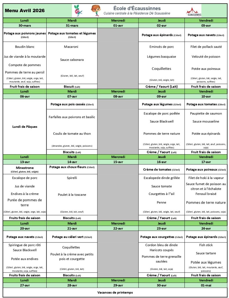Merci de prévenir avant 11h la veille si un repas doit être annulé en cas d’absence